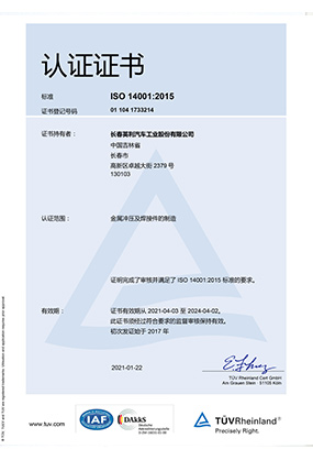 ISO 14001 認(rèn)證證書